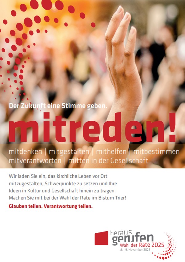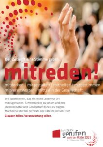 - Schlagen Sie Kandidatinnen und Kandidaten vor (bitte bis zum 07.10.2025 im Pfarrbüro in Salmtal abgeben)