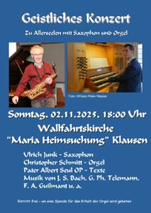 In Klausen findet an Allerseelen, 2. November 2025 um 18:00 Uhr ein geistliches Konzert in der Wallfahrtskirche Klausen statt.