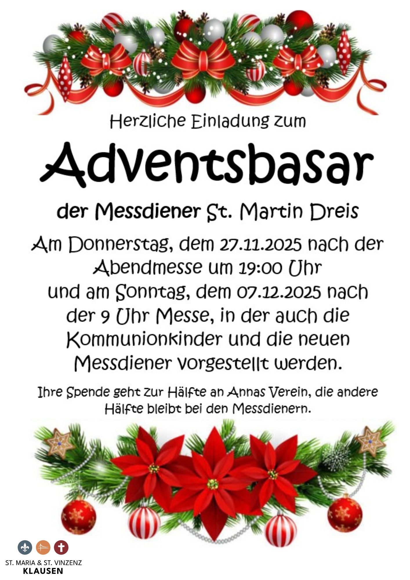 Herzliche Einladung zum Adventsbasar der Messdiener St. Martin Dreis
