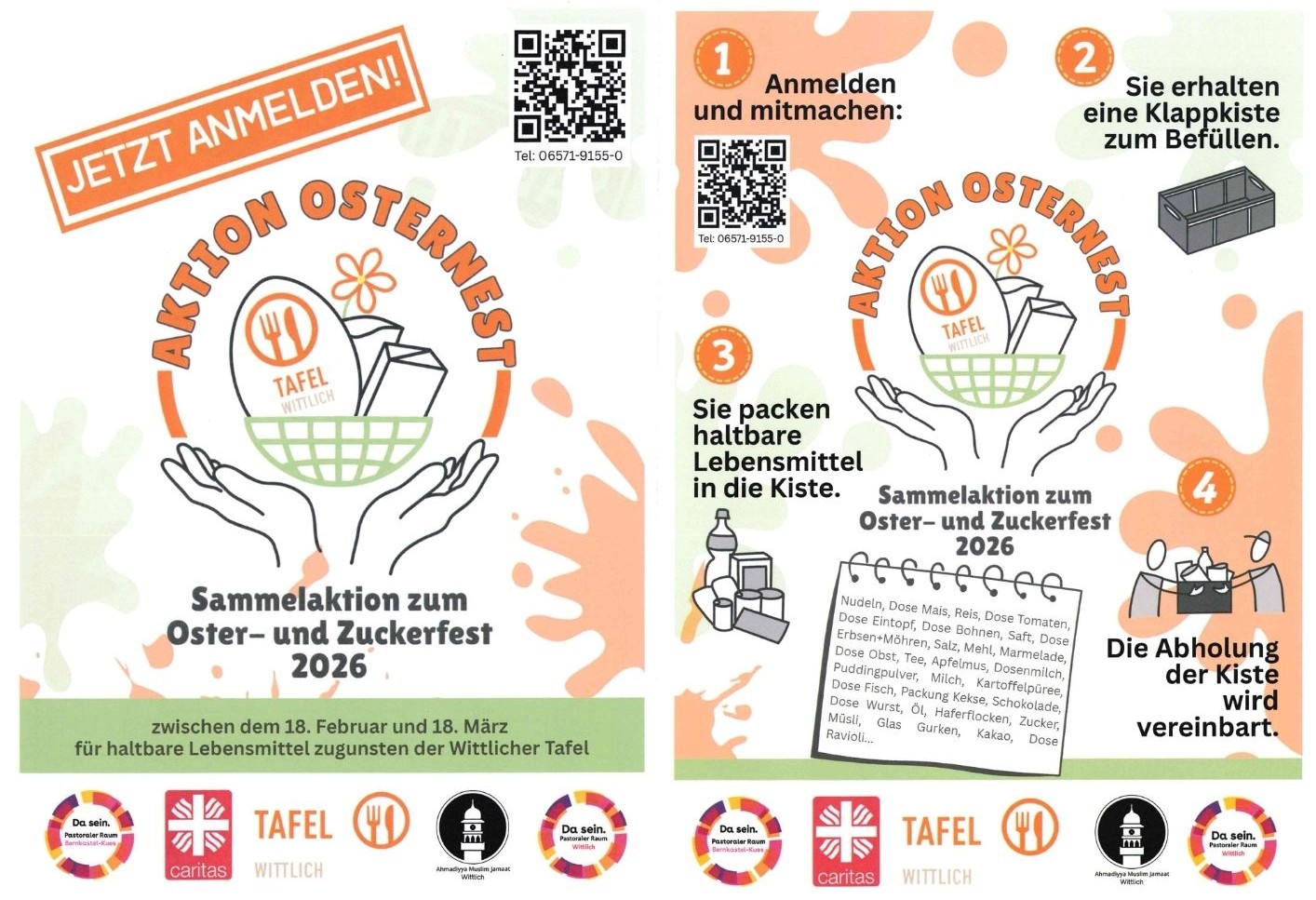 Im Wortgottesdienst am 1.3.2026 beteiligen wir uns an der „Aktion Osternest“ und sammeln für die Tafel. Benötigt werden: